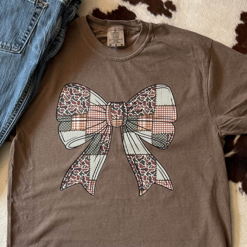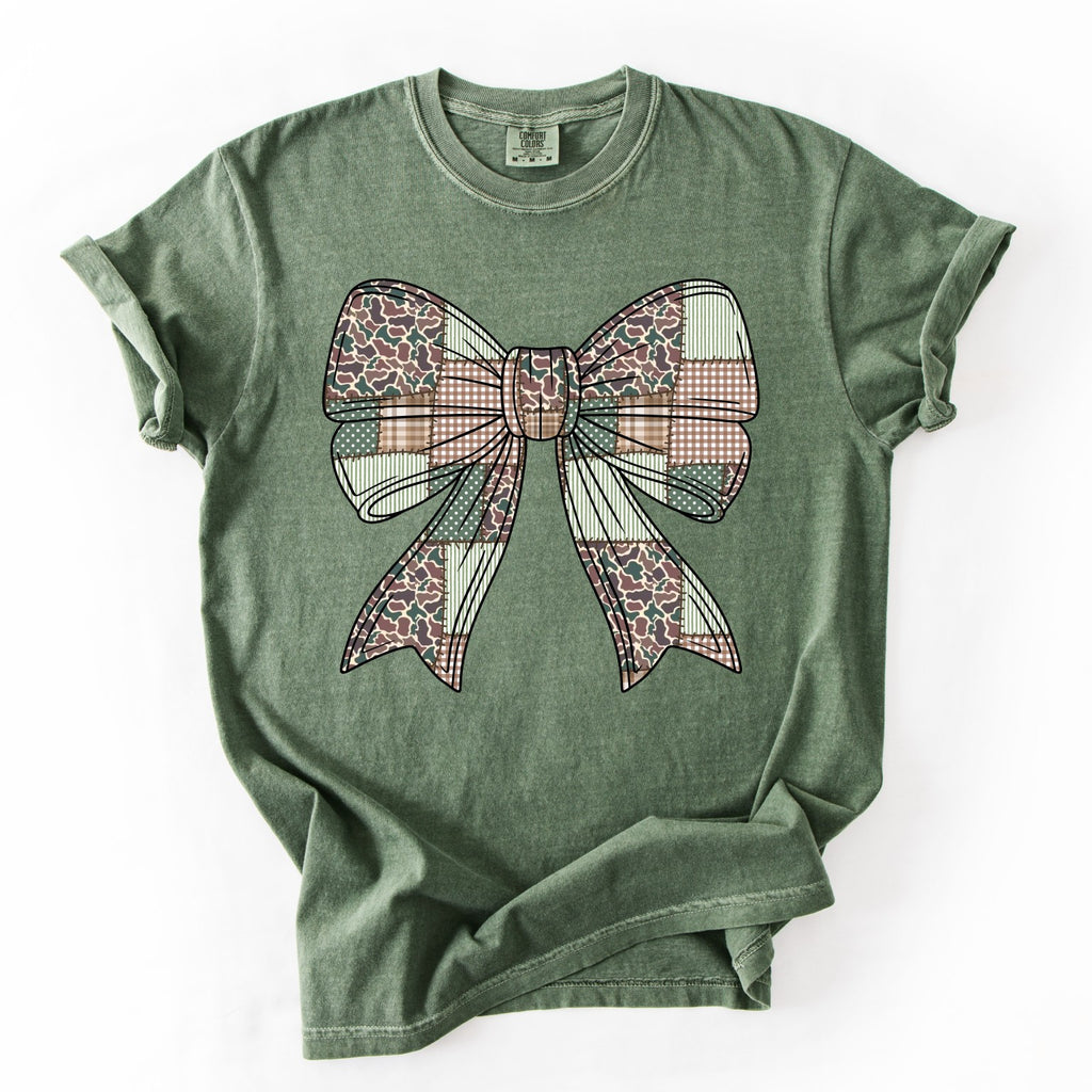 Comfort Colors® Camo Bow Graphic Tee | Country Girl Coquette Shirt in Military Green or Brown
