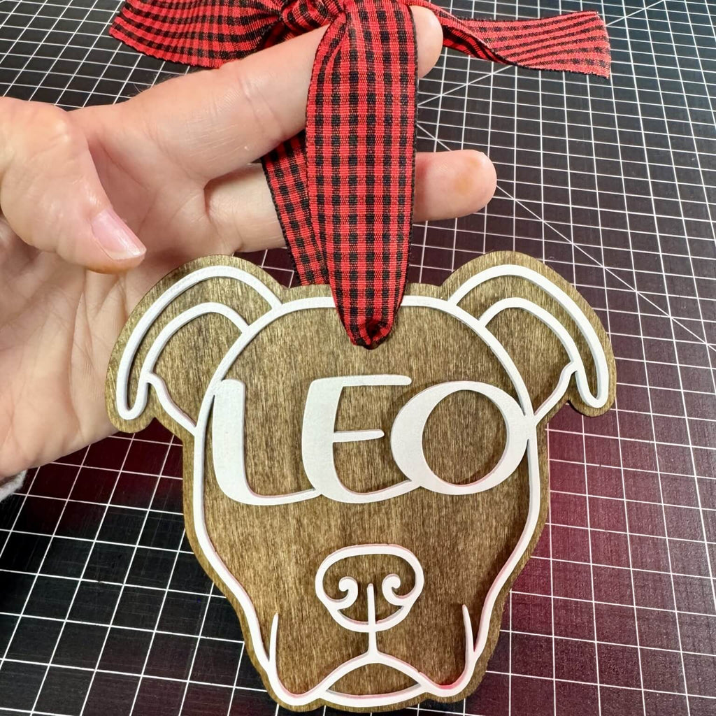 Celebrate your pup’s place in the family with this handmade wooden Pitbull ornament, personalized with your dog’s name. Each piece is crafted from beautifully stained birchwood and layered with precision-cut white acrylic for a clean, modern farmhouse look.